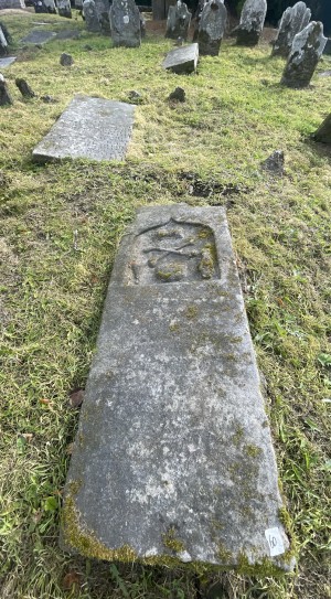 Large flat stone with mortality symbols, very badly weathered stone.