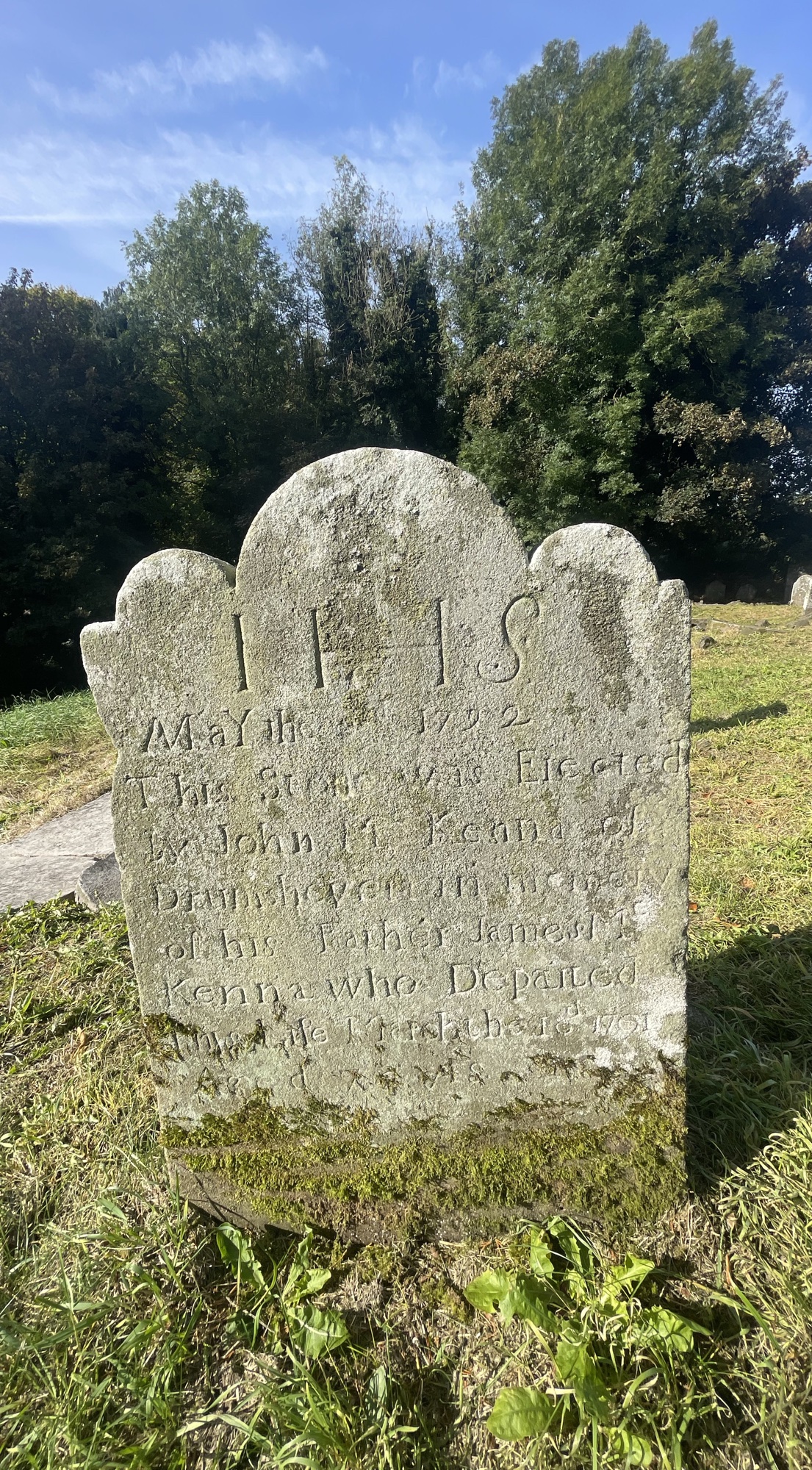 IHS May the 9th 1792. This stone was erected by John McKenna of Drumshevera in memory of his father James McKenna who departed this life March the 16th 1791 aged 74 yrs.