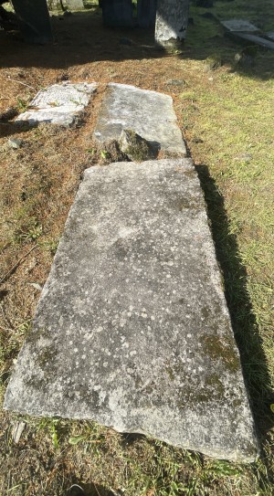 Here lyeth ye body of Rober[t] Robinson who departed this life ye 17th of January 1770 [?] aged 75 years. Here lieth the body of Hanna Robinson ... of Robert Robinson who departed this life ye.. Of March aged 67 years 17..
