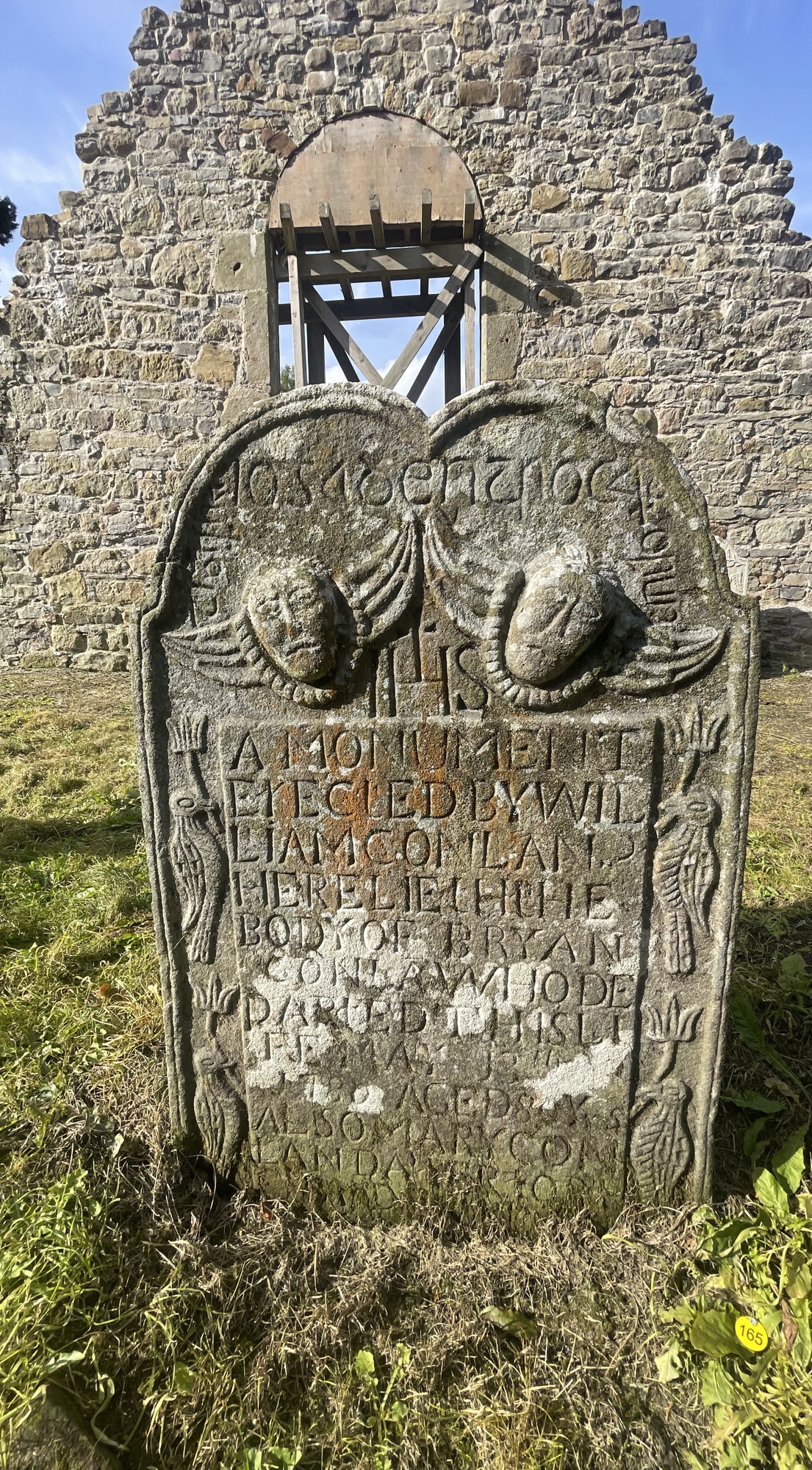 A monument erected by William Conlan. IHS Here lieth the body of Bryan Conla who departed this life May 13th 1780 aged 80 yrs. Also Mary Conlan dater to Richard Conlan who died Sept 12th 1769 aged 5 years.