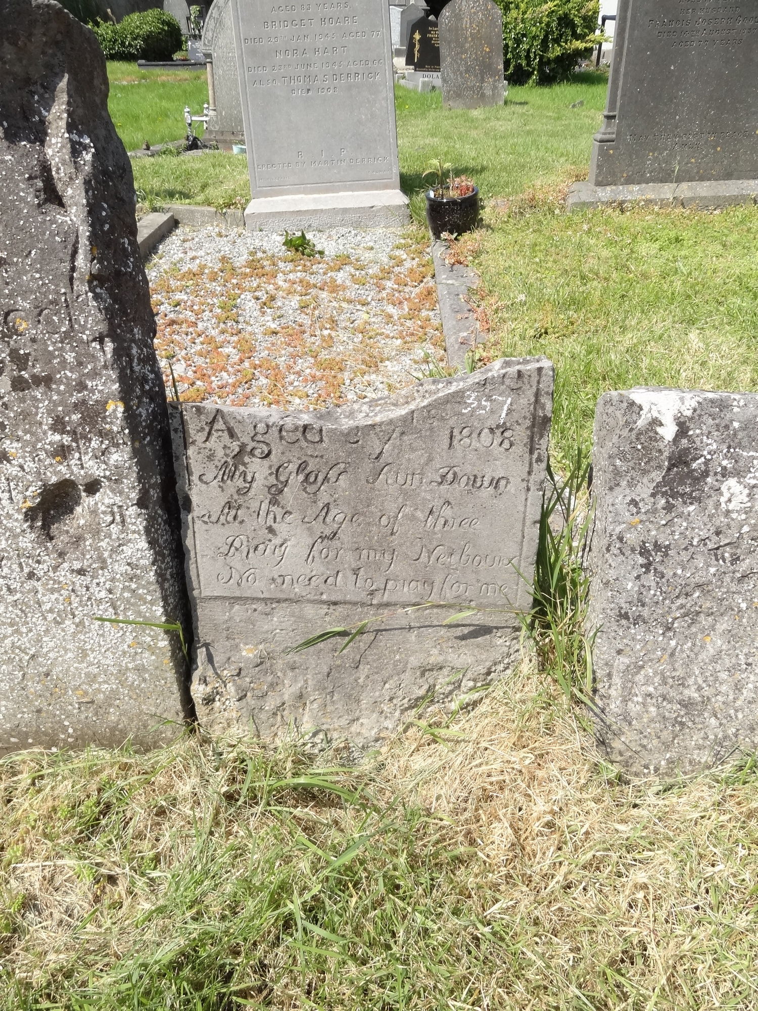 The upper part of this child's headstone is broken.