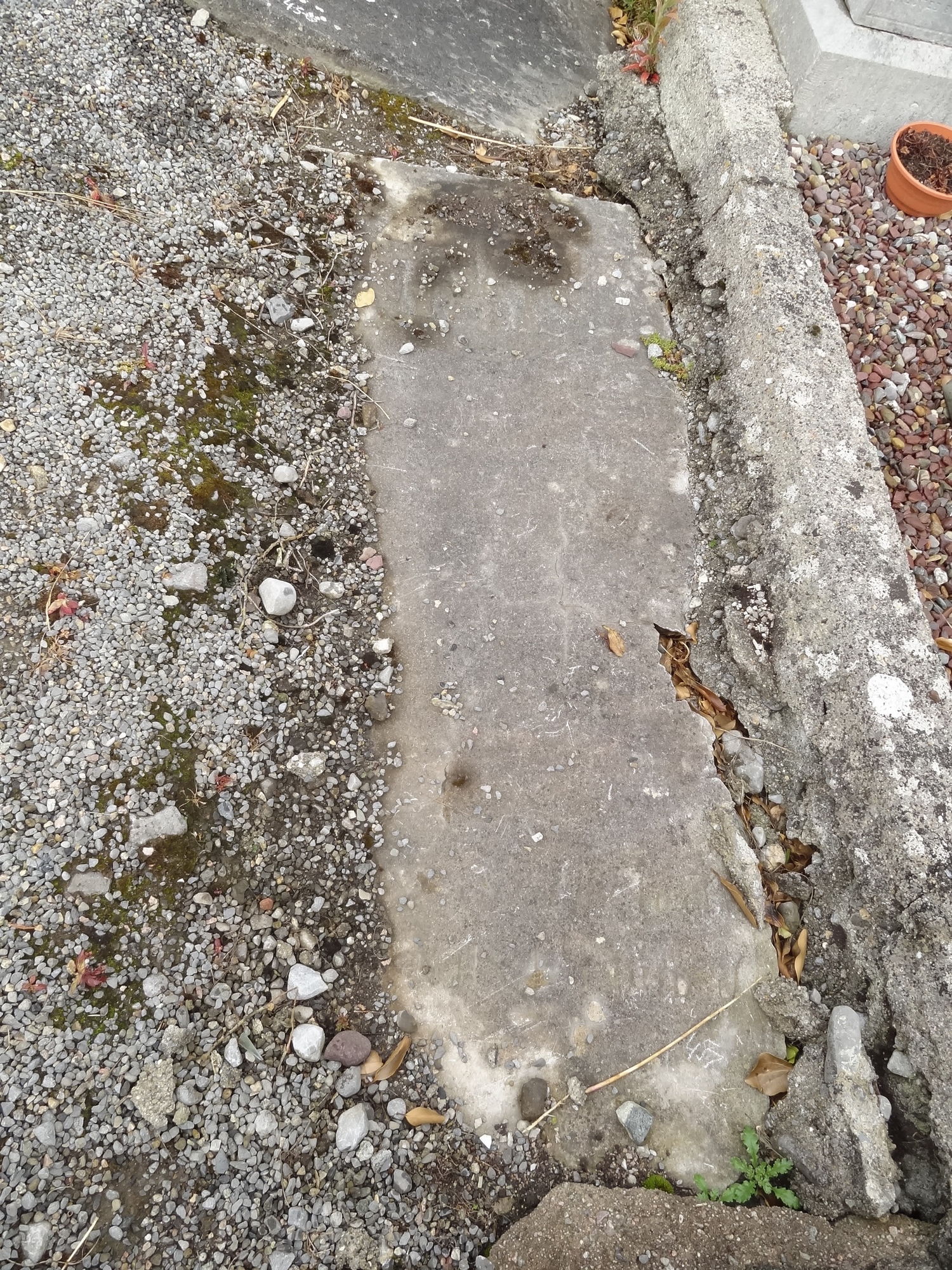 There is no inscription visible in this partially buried recumbent slab