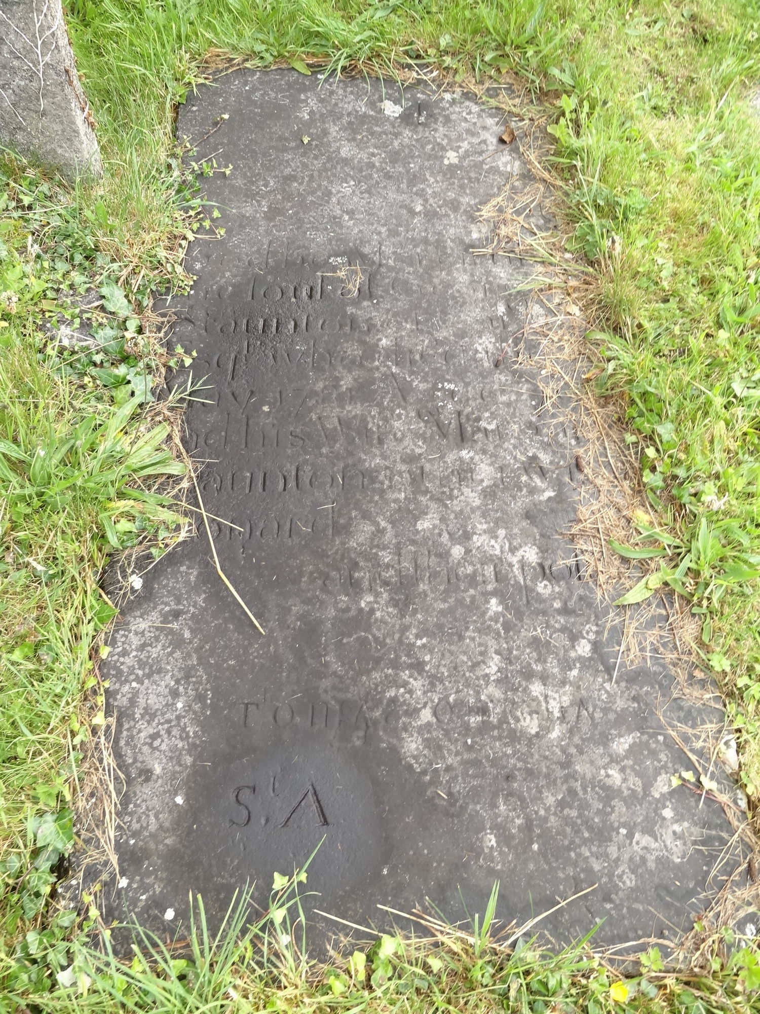 This recumbent slab is west facing and is marked with a small cross and the initials St A at the base of the stone. It maybe a high status grave which was reused as a friars grave.