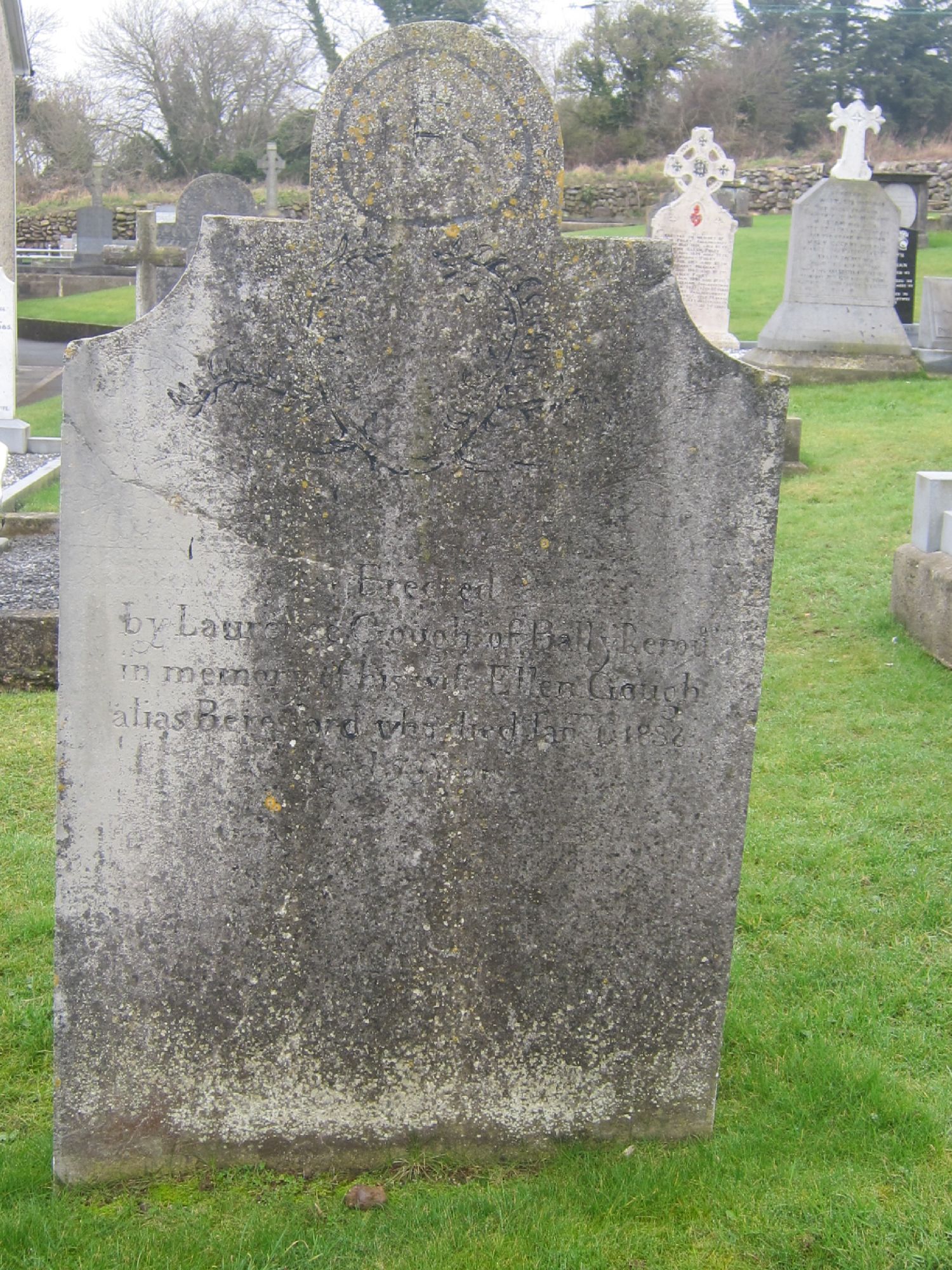 Erected by Laurence Gough of Ballykerouge in memory of his wife Ellen Gough alias Beresford who died June 1838 aged 53 yrs