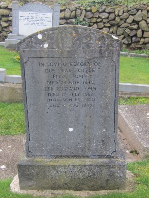 In loving memory of our dear mother Ellen Tobin, died 28 Nov, 1945 Her husband John died 17 July 1962 their son Francis died 8 Aug 1945