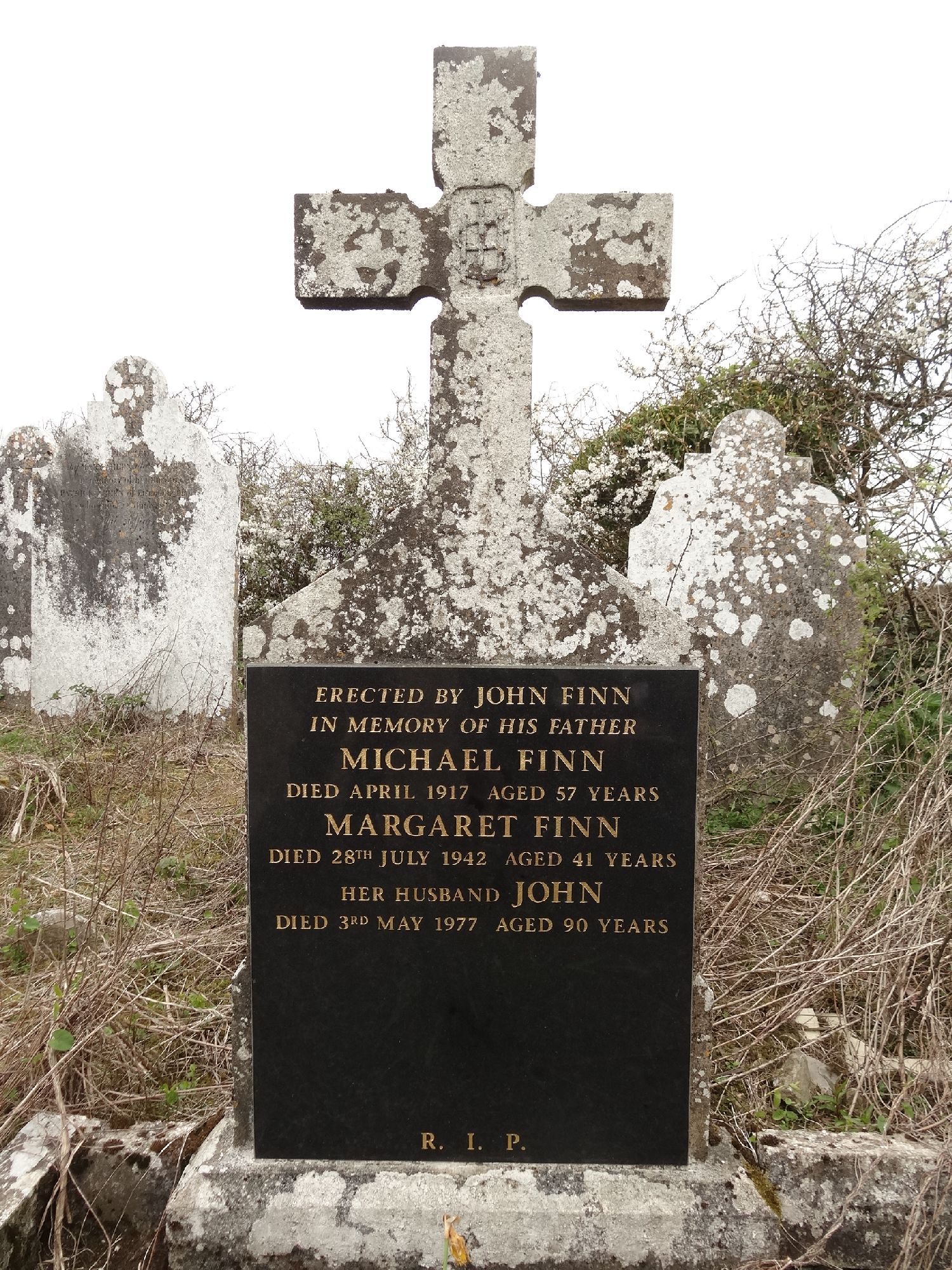 Erected by John Finnin memory of his FatherMichael Finndied April 1917 aged 57 yearsMargaret Finndied 28th July 1942 aged 41 yearsher Husband Johndied 3rd May 1977 aged 90 yearsR.I.P.