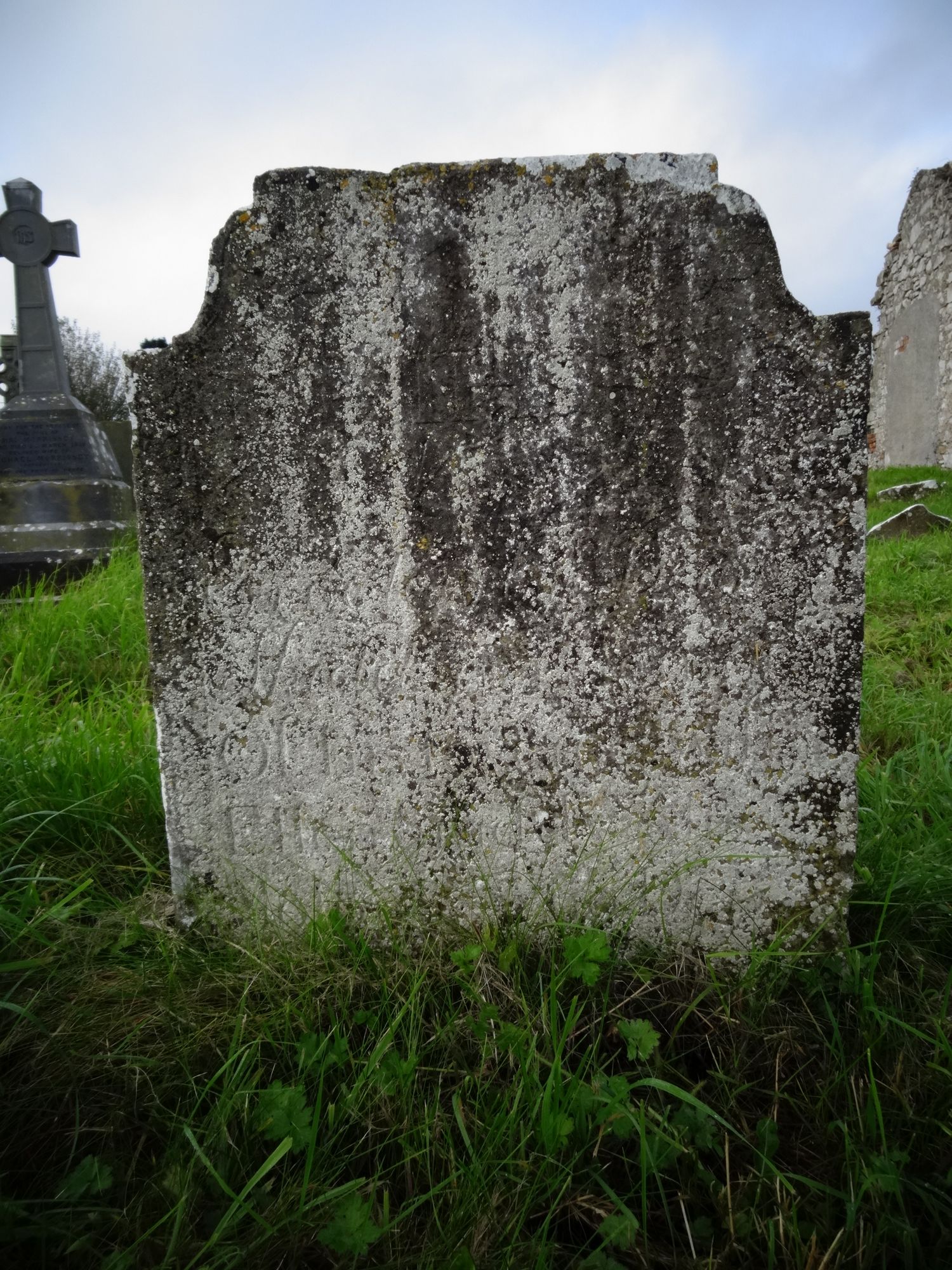 Erected by DanlSkiddy in memory of his loving wifeEllen Skiddy alias Moloney who depd life Octbr ye 28th 1810agd 38 yrs may her................................