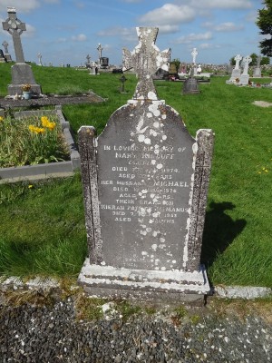 Also interred here is their daughter Elizabeth (Lizzie) Kilduff wife of Michael Ledwith, Clonulty who died on the 18th May 2020.