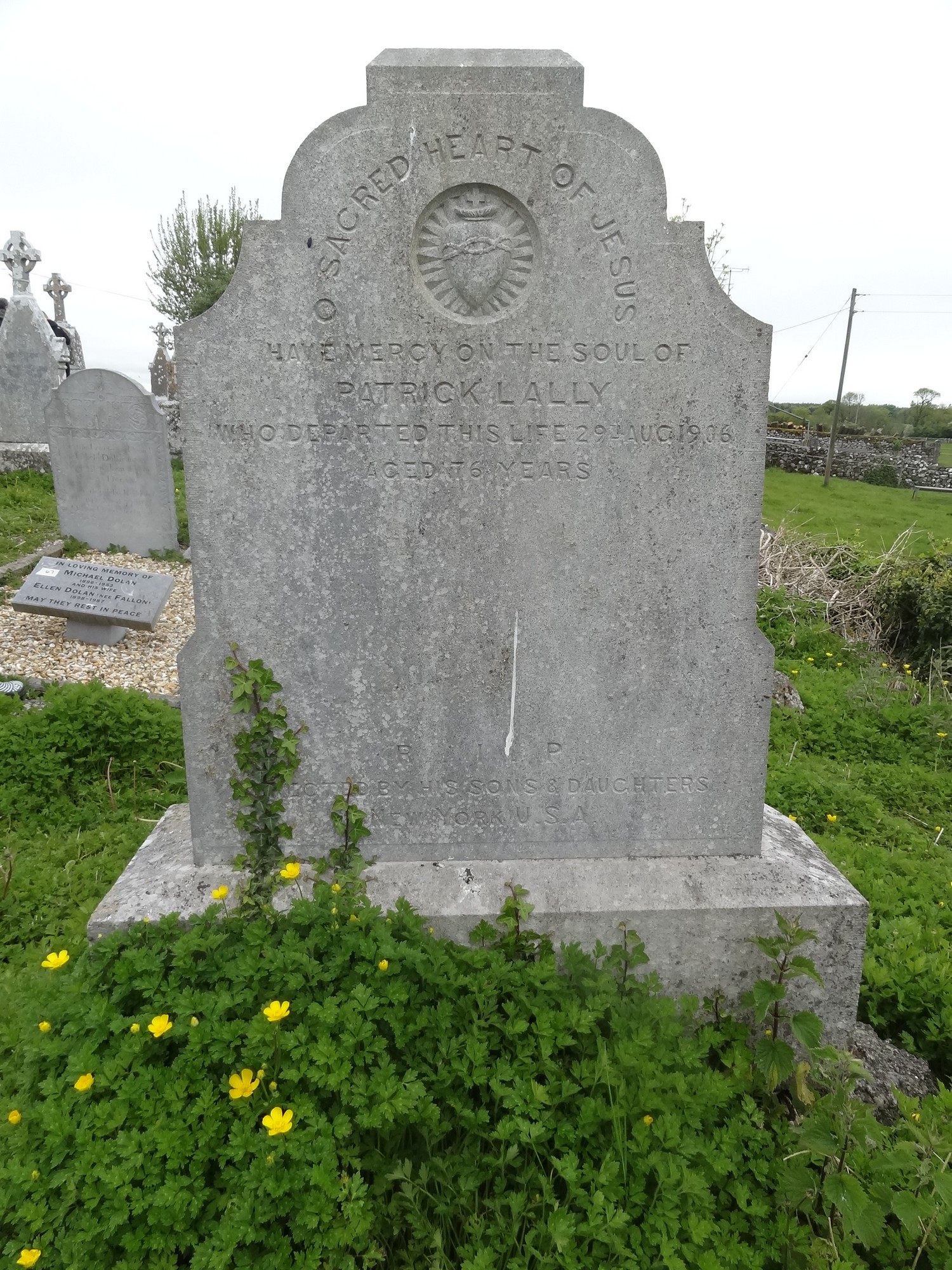 O sacred heart of Jesus have mercy on the soul of Patrick Lallywho departed this life 29th Aug 1906 aged 76 years.