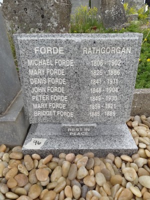 Michael Forde 1806-1902Mary Forde 1826-1886Denis Forde 1841-1911John Forde 1848-1904Peter Forde 1849-1930Mary Forde 1859-1921Bridget Forde 1885-1889