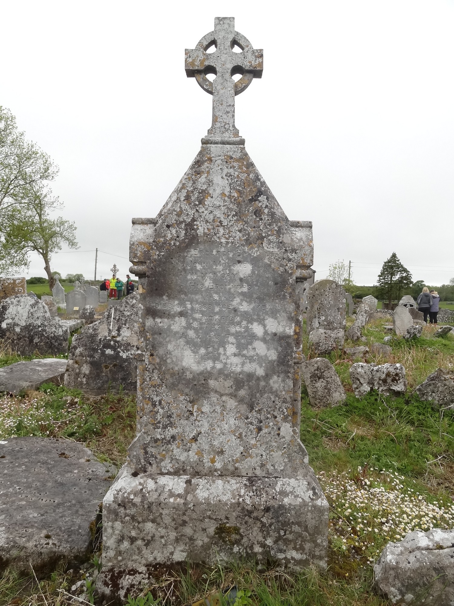 Erected by John Moloney in memory of his brothersMichael died Oct 1889 aged 20 years.Patrick died March 1892 aged 25 years.Also his father Michael Moloney died 31st oct 1909 aged 87 years.