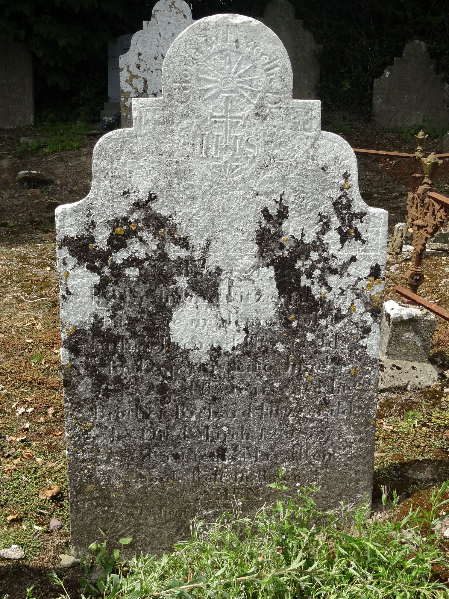 cross inscribed footstone - west facing with initials with R. F.