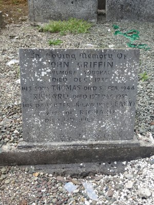 In loving memory ofJohn GriffinPilmore Youghaldied Dec 1935his Sons Thomas died 5th Feb 1944Richard died 19th Dec 1959his Daughter-in-law [nee Leahy]Wife of Richarddied 12th July 1967R.I.P.