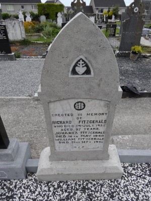 Erected In MemoryOfRICHARD FITZGERALDWho Died 29TH July. 1927Aged 57 YearsJOHANNA FITZGERALDDied 16TH May 1940WILLIAM FITZGERALDDied 21ST Sept. 1946