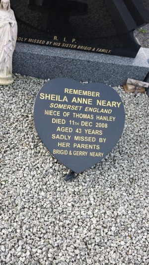 REMEMBER SHEILA ANNE NEARY SOMERSET ENNGLAND NIECE OF THOMAS HANLEY DIED 11 DEC 2008 AGED 43 YEARS SADLY MISSED BY HER PARENTS BRIGID & GERRY NEARY