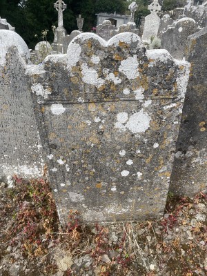 This stone is unusual in that it has fish pointing upwards on the upper front face. On the rear there is a downward pointing dove, with fish pointing downwards too.