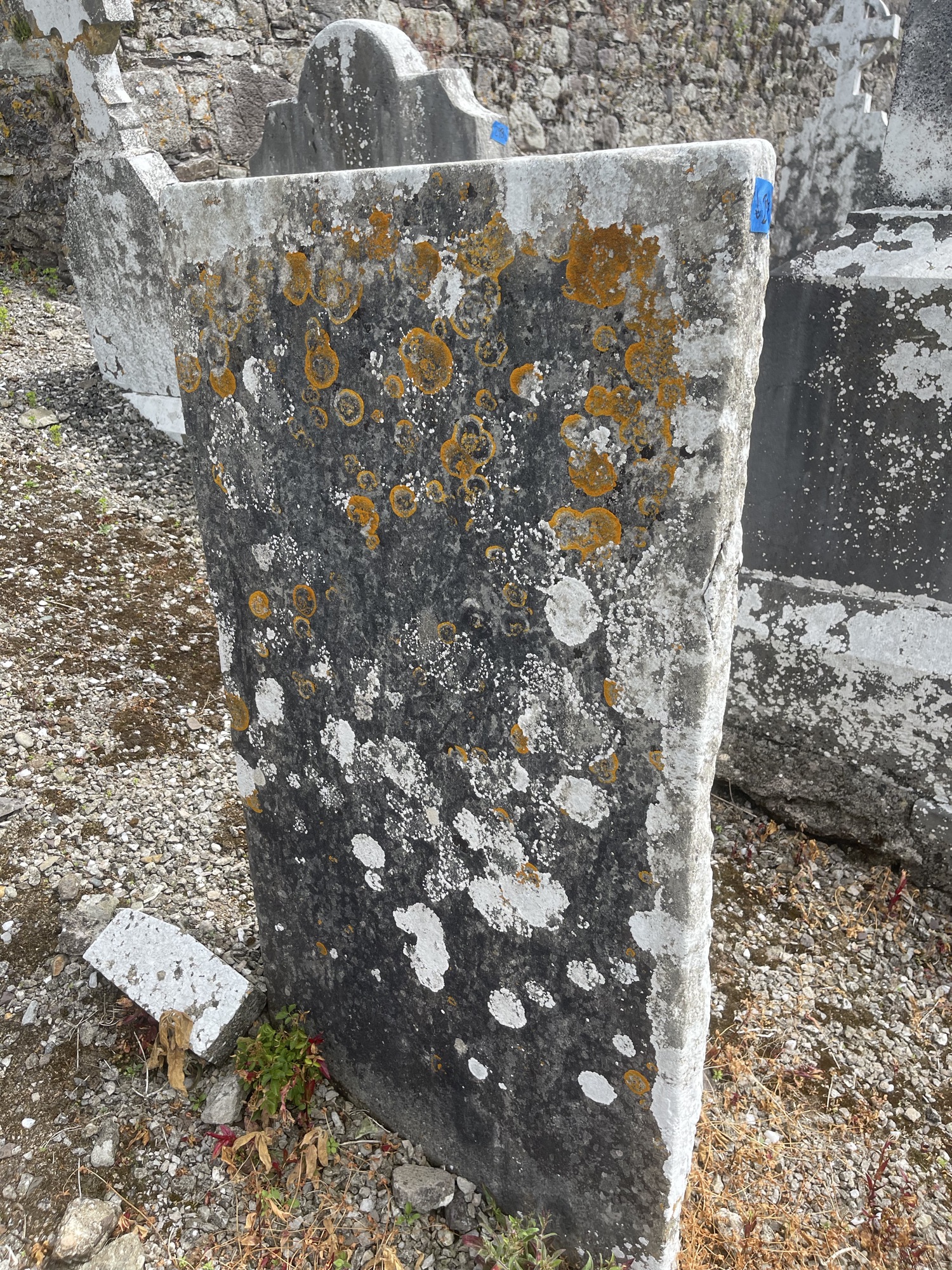 Reversed headstone, facing west. Very worn.