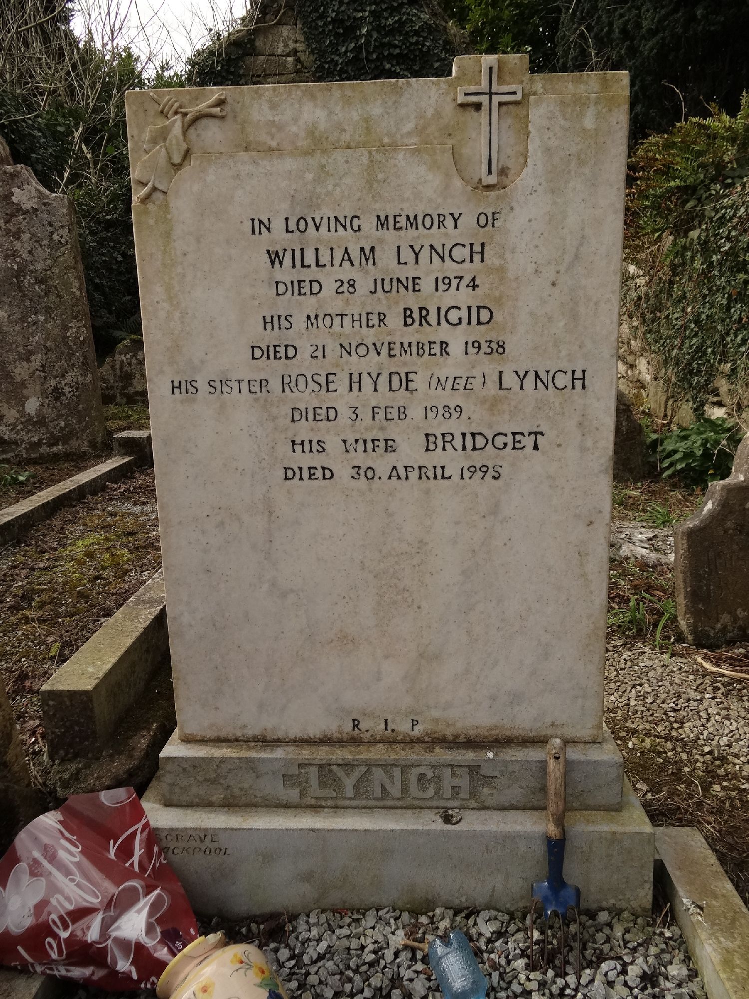 In Loving Memory Of William Lynch Died 28.June 1974 His Mother Brigid Died 21 November 1938 His Sister Rose Hyde (nee) Lynch Died 3. February 1989 His Wife Bridget Died 30 April 1995