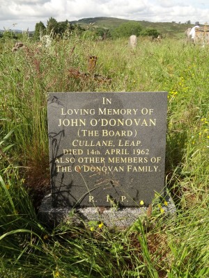 INLOVING MEMORY OFJOHN O'DONOVAN(THE BOARD)CULLANE, LEAP.DIED 14th APRIL 1962ALSO OTHER MEMBERS OFTHE O'DONOVAN FAMILY