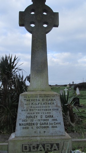 In Loving Memory of/ Theresa O'Gara/ Nee Kilfeather/ Died 20th October/ 1946/ Aged 26 years/ Dudley O'Gara/ Died 22nd October 1986/ Maureen O'Gara (nee Carr)/ Died 5th October 2008/ R.I.P./O'GARA