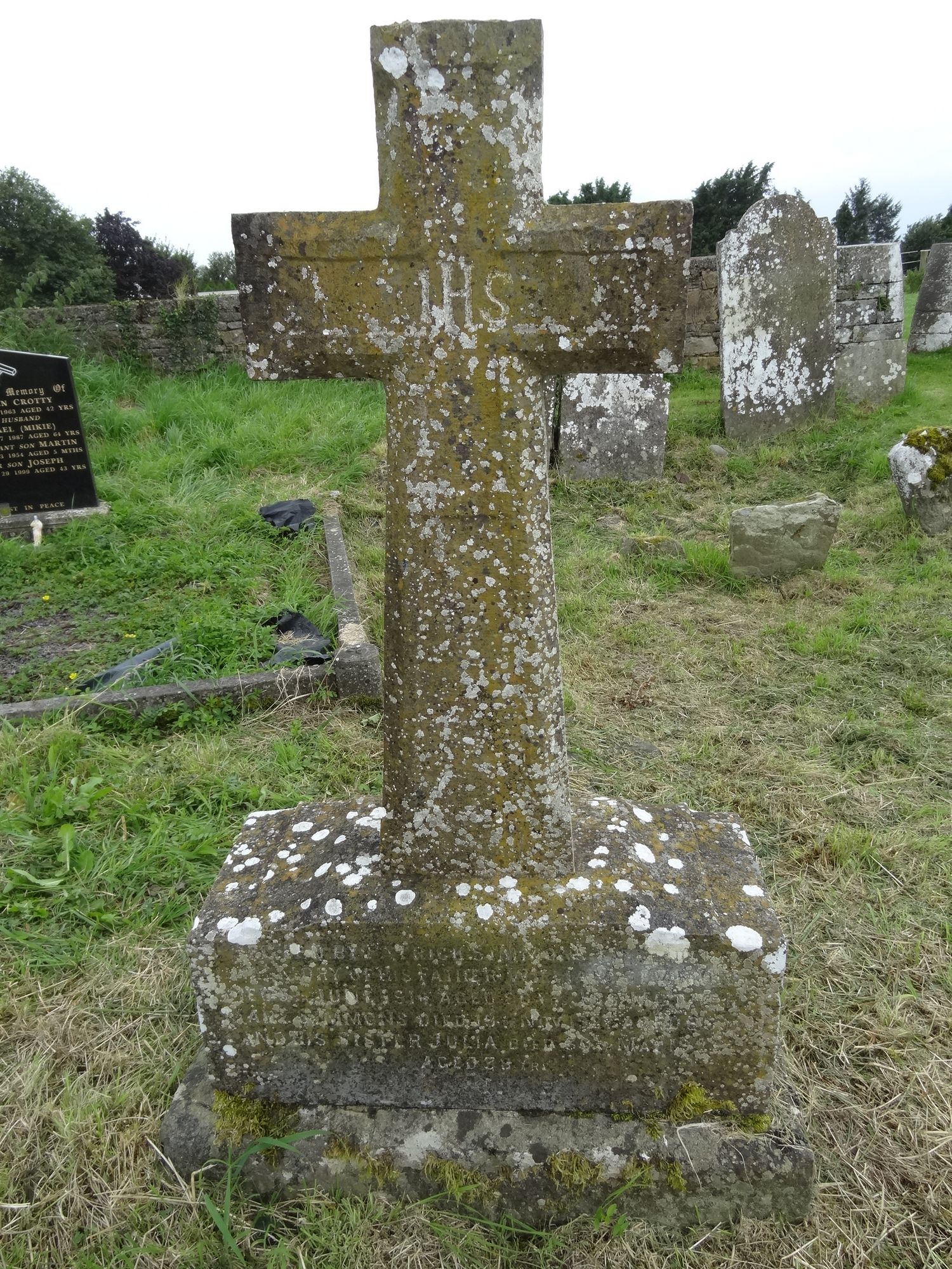 ERECTED BY PATRICK SIMMONS TANKARSTOWN IN MEMORY OF HIS FATHER WILLIAM SIMMONS DIED 5 JUNE 1914 AGE 80 YRS HIS MOTHER MARY SIMMONS DIED 19th NOV 1927 AGED 83 YRS AND HIS SISTER JULIA DIED 30th MAY 1925 AGED 38 YRS RIP