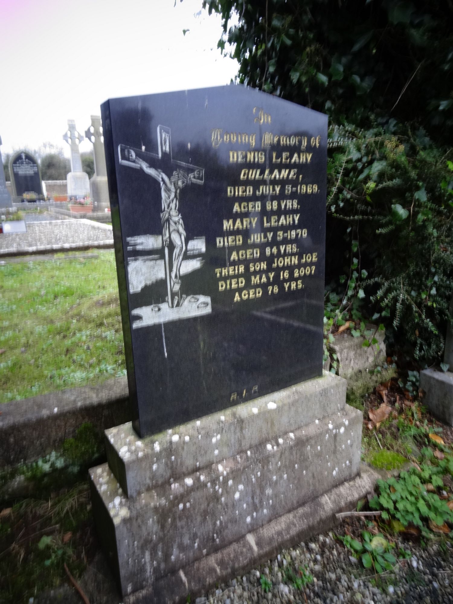 Inloving memory of Denis LeahyCullane died July 5 1969aged 88 yrsMary Leahydied July 3 1970aged 84 yrstheir son John Joe died May 16 2007aged 78 yrsRIP