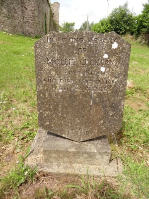 Also interred at Magourney Graveyard are Daniel O'Leary (brother of Mollie O'Leary), who died on 28 June 1966 aged 76 (death notice/obituary in Irish Examiner, 30 June 1966 and Southern Star, 9 July 1966) and his wife Margaret O'Leary, who died on 25 July 1967 aged 64 (death notice in Echo, 26 July 1967)