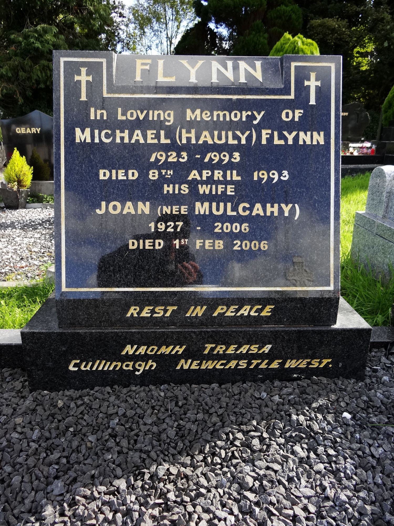 In Loving Memory OfMICHAEL (HAULY) FLYNN1923- 1993Died 8TH April 1993His WifeJOAN (NEE MULCAHY)1927 - 2006Died 1ST Feb 2006