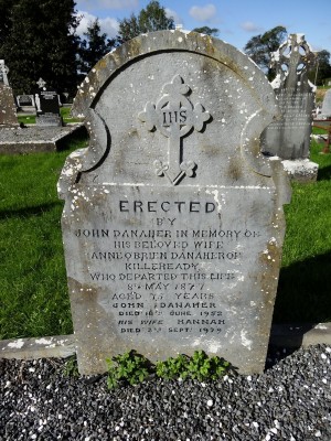 ERECTEDBY JOHN DANAHER IN MEMORY OFHIS BELOVED WIFEANNE O'BRIEN DANAHER OFKILLEREADYWHO DEPARTED THIS LIFE8TH MAY 1877AGED 75 YEARSJOHN DANAHERDIED 18TH JUNE1952HIS WIFE HANNAHDIED 3RD SEPT. 1979