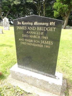 In Loving Memory OfJAMES AND BRIDGETANNACLUEDIED MARCH 1949AND THEIR SON JAMESDIED NOVEMBER 1981