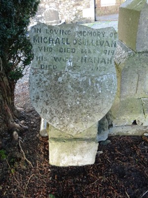 IN LOVING MEMORY OF MICHAEL O'SULLIVAN WHO DIED MAR 1919 HIS WIFE HANAH DIED OCT 1923 R.I.P ERECTED BY MAMIE, TOM, RICHIE
