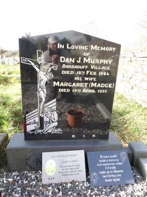 IN LOVING MEMORY OF DAN J. MURPHY BARRADUFF VILLAGE DIED 18TH FEB 1984 HIS WIFE MARGARET (MADGE) DIED 19TH APRIL 1995 R.I.P. MURPHY