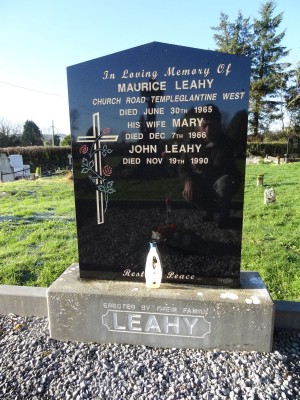 In Loving Memory OfMAURICE LEAHYChurch Road Templeglantine WestDied June 30TH 1965His Wife MARYDied Dec 7TH 1966JOHN LEAHYDied Nov 19TH 1990