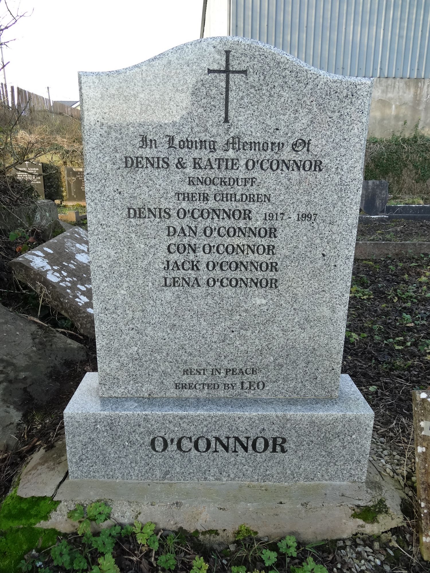 IN LOVING MEMORY OFDENIS & KATIE O'CONNORKNOCKDUFFTHEIR CHILDRENDENIS O'CONNOR 1917-1997DAN O' CONNORCON O'CONNORJACK O'CONNORLENA O'CONNORREST IN PEACEERECTED BY LEOO'CONNOR