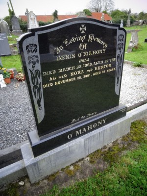 In loving memory of Denis O'Mahony Oola Died March 28 1989 aged 87 yrs his wife Nora nee Burton Died November 28 2001 aged 91 years Rest in Peace