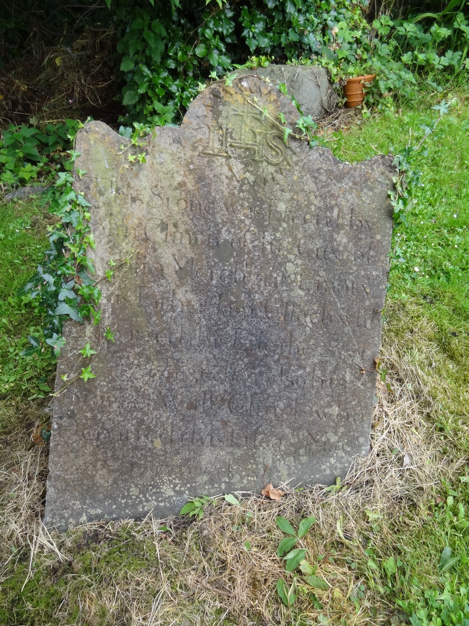 IHS This Stone was erected by John Clinch of the City of Dublin Merch' in memory of his father JAMs CLINCH who departed this life 23 of Oct 1747 aged 65 also his brother WILLm CLINCH who departed this life 17th MARh 1748 aged 35