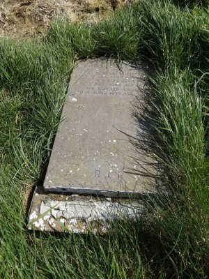 Flat lying, fallen headstone.