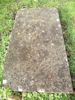 The east facing limstone tombstone measures 6ft6ins(H) x 3ft6ins(W) x 5ins(D) There is no inscription on the slab.