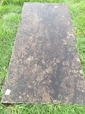 The east facing square top limestone slab measures 7ft x 3ft6in x 5in and has roman style incised script. There is a christogram with cross and heart at the top of the stone, carved in relief under a sunburst arc. Either side of the arc are decorative swirls. Although no address is mentioned on the headstone for the O'Garas, church records show they lived in the townland of Lissagurrane.