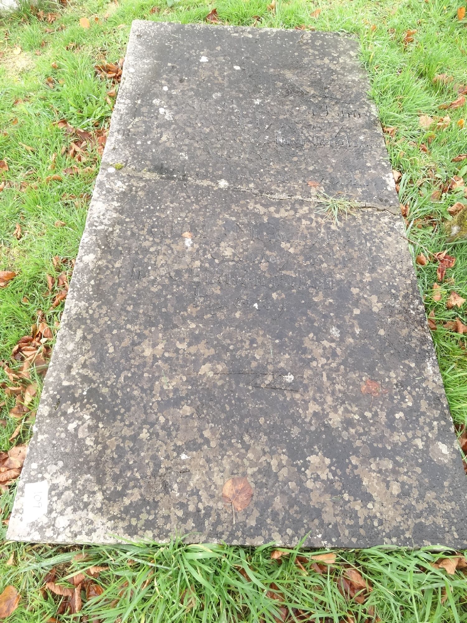 This east facing limestone ledger slab is square top and measures 7ft2in x 3ft6in x 5in. There is a fracture line splitting the stone just above mid way. The script on the ledger is incised Roman lettering and it has a christogram at the top with cross and heart carved in relief under a sunburst arc. The mason has been economical with space for lettering using abbreviations and a symbol resembling an inverted winged V for the word 'and' on the second last line. At the bottom of the stone there is a simply incised plough indicating John Hanly was a farmer.Whilst no address was given on the grave for John Hanly, the parish death register gives the address of Tooreeney, Moycullen for John Hanly when he died in 1807.