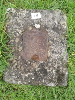 Measuring 2ft(H) x 1ft8in(W) x 3in(D), this uninscribed limestone base has an inner socket measuring 9½in(H) x 8in(W) x 2in(D) where most likely a cross once stood.