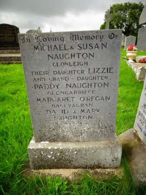 In Loving Memory Of MICHAEL & SUSAN NAUGHTON CLONLEIGH THEIR DAUGHTER LIZZIE AND GRAND DAUGHTER PADDY NAUGHTON GLENGARRIFFE MARGARET O REGAN BALLYAGRAN DAVID & MARY NAUGHTON FEONANAGH R.I.P.