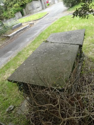 I.H.S. Sacred to the memory of James Hughes who departed this life on 17th March 1856, aged 17 years. Also John McDermott who departed this life on February 22nd 1868, aged 44 years by whose wife this tomb has been erected. May the Lord have mercy on their souls. Here also be deposited the remains of Mrs. May Sweeney, sister of the latter and former wife of the latter. She died 31st August 1899, aged 44 years. Requescant in pace.