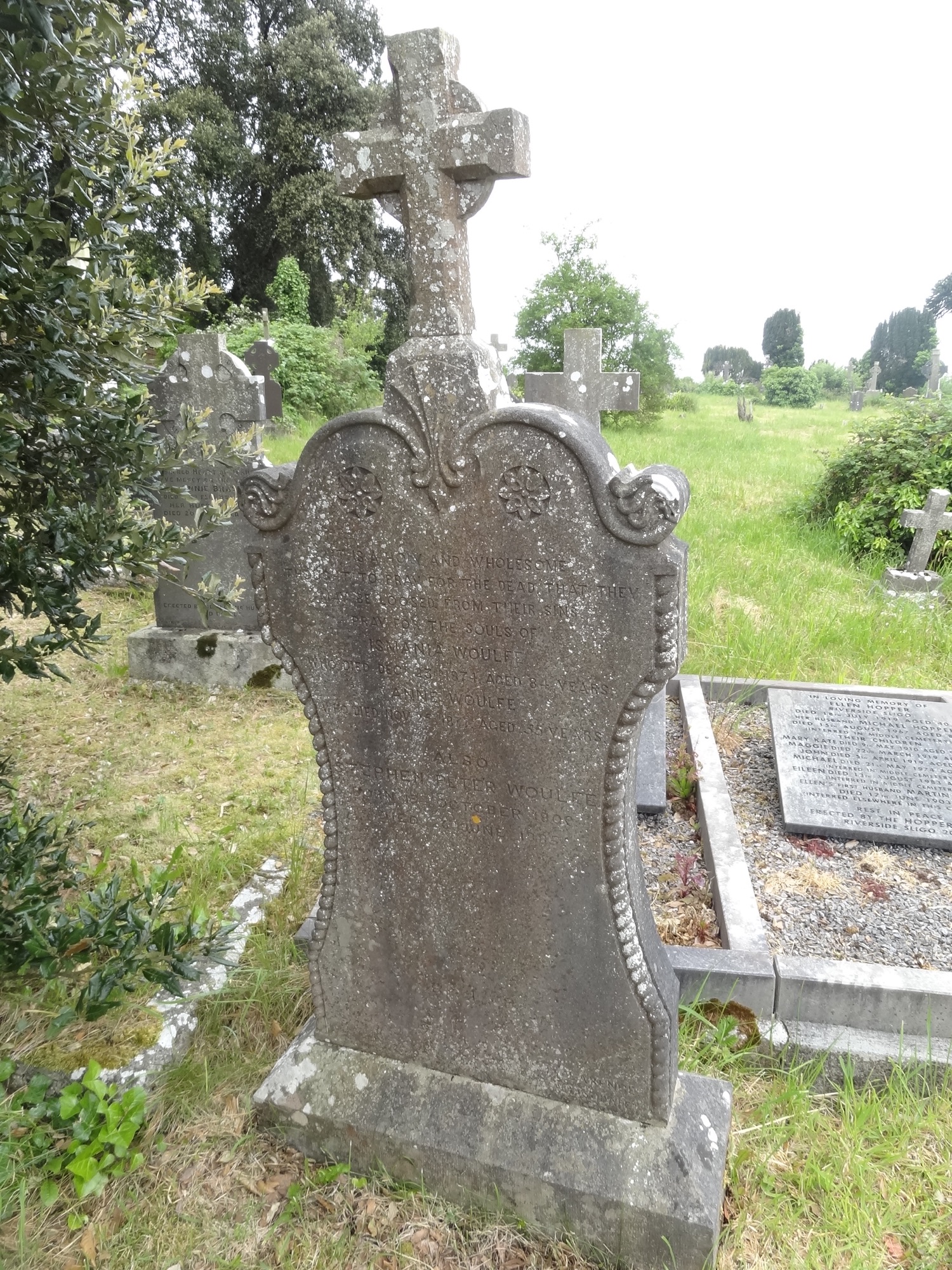 Pray for the souls of Ismaria Woulfe who died Dec. 23. 1874 aged 84 yrs. Anne Woulfe who died Nov. 25. 1877 aged 55 yrs. Also Stephen Peter Woulfe born 30 Oct. 1809 died 26 June 1885. R.I.P.
