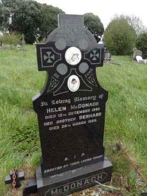 In loving memory of Helen McDonagh died 12th December 1980. Her brother Bernard died 26th March 1966. R.I.P. ' Erected by their loving family. McDonagh.