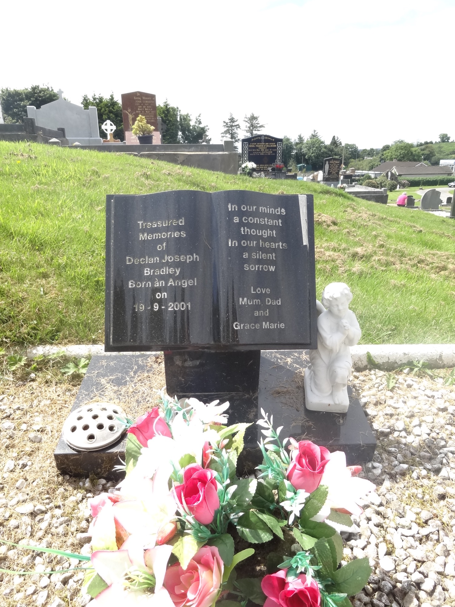 Treasured Memories of Declan Joseph Bradley Born an Angel on 19-9-2001 'In our minds a constant though In our hearts a silent sorrow' Love Mum Dad and Grace Marie