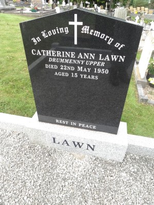 In loving memory of CATHERINE ANN LAWN DRUMMENNY UPPER DIED 22ND MAY 1950 AGED 15 YEARS REST IN PEACE LAWN