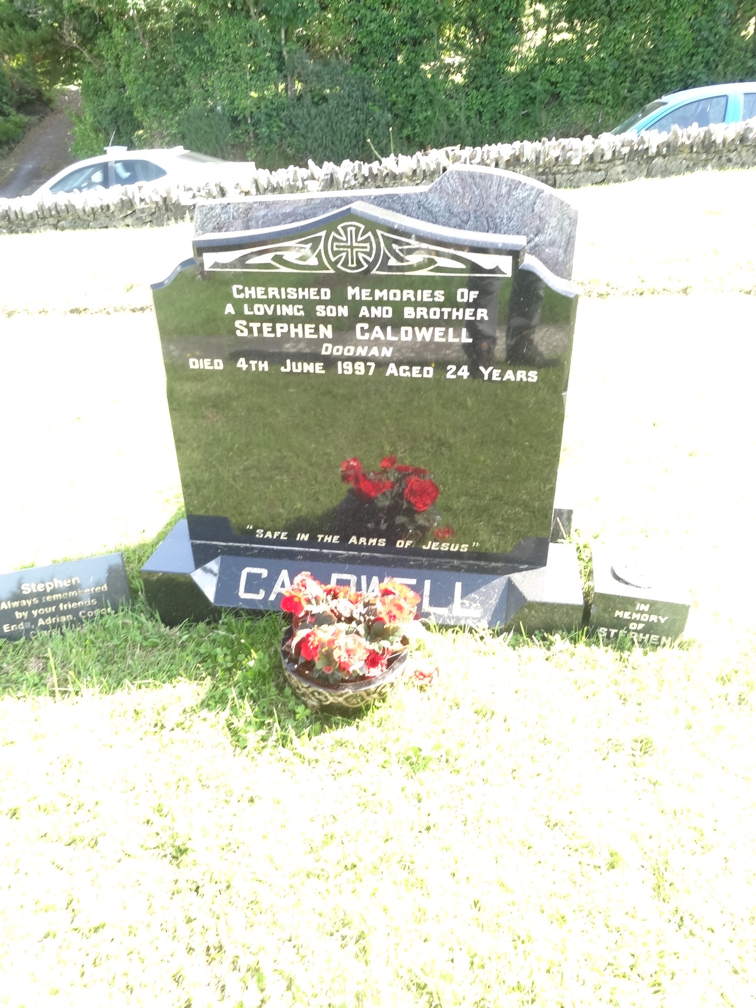CHERISHED MEMORIES OF A LOVING SON AND BROTHER STEPHEN CALDWELL DOONAN DIED 4TH JUNE 1997 AGED 24 YEARS 'SAFE IN THE ARMS OF JESUS' CALDWELL