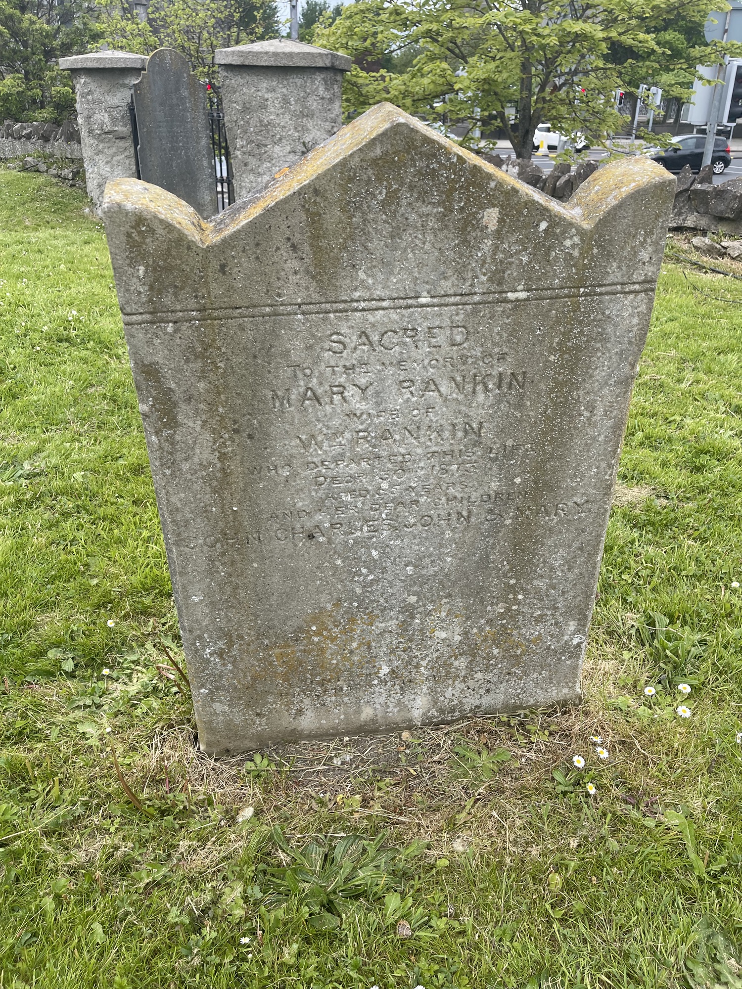 SACREDTO THE MEMORY OFÂ WIFE OFWm RANKINWHO DEPARTED THIS LIFEDECr 30TH 1875AGED 55 YEARSND HER DEAR CHILDRENJOHN CHARLES JOHN & MARYABSENT FROM THE BODYPRSENT WITH THE LORDERECTED BY HER SURVIVING CHILDRENAS A TOKEN OF THEIR LOVE