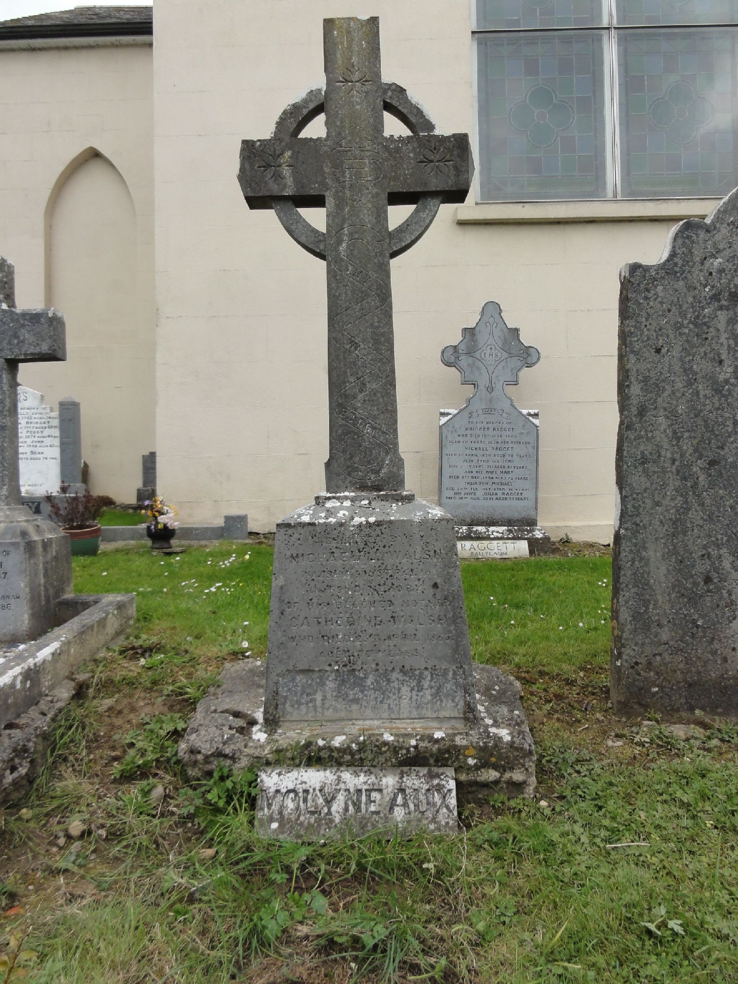 Thy will be done Erected by Michael J Walsh, Walsha, Australia in fond memory of his beloved mother Catherine Walsh who died 25th April 1883 aged 76 years. Molyneaux.